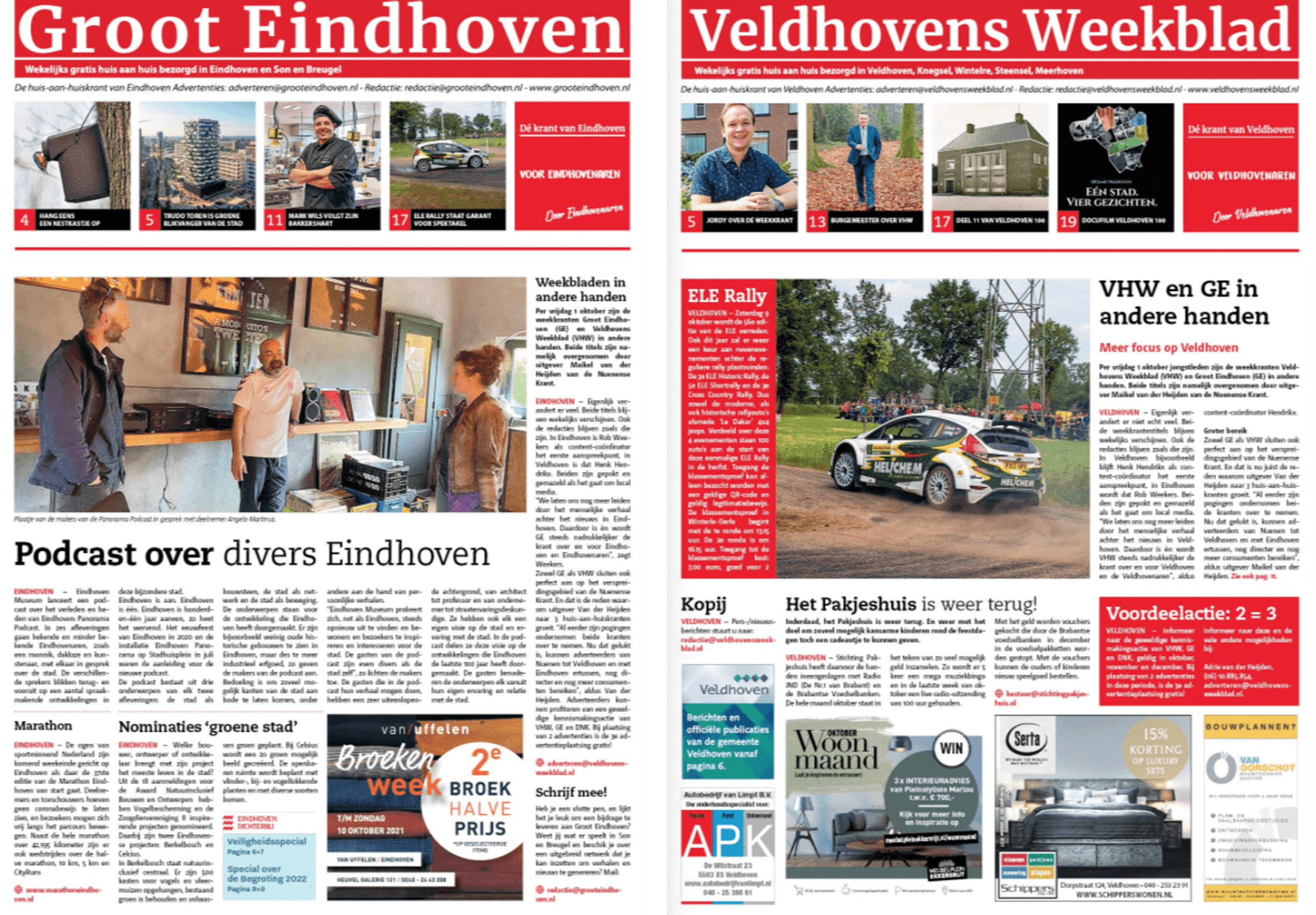 De weekbladen Groot Eindhoven en Veldhovens Weekblad zijn per 1 oktober jl. overgegaan van DPG Media naar uitgeverij Van der Heijden, eigenaar van De Nuenense Krant. Groot Eindhoven wordt wekelijks verspreid in een oplage van 97.897 exemplaren in de gemeenten Eindhoven en Son en Breugel. Veldhovens Weekblad verschijnt wekelijks in een oplage van 25.200 exemplaren in Veldhoven, Knegsel, Wintelre, Steensel en Meerhoven.